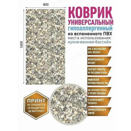 Коврик для ванны или душа в эстетичном дизайне - стильный интерьерный элемент, который станет эффектным украшением комнаты. Универсальный аксессуар толщиной 3 мм выполнен в оптимальном размере: длина - 160 см, ширина - 80 см, изготовлен из гипоаллергенного материала - вспененного ПВХ. Перфорированный «половик» прямоугольной формы украшен стильным принтом, который не смывается, не выцветает и не выгорает, долго радует вас насыщенностью цвета и яркостью декоративного рисунка в виде ракушек или камушков, цветов и растений, красивых узоров. Износостойкий ковер можно расположить в ванной комнате, чтобы опускать на него ноги после купания без риска поскользнуться и упасть. Его можно положить около стиральной машины, около унитаза в туалете. Модный аксессуар уютно украсит совмещенный санузел в доме или квартире. Красивый коврик с очень мягкой поверхностью не скользит по полу, впитывает воду, не препятствует ее активному стоку, приглушает звуки и сохраняет тепло. Современную модель с антискользящей основой выбирают для сауны или бани на даче, для расположения у лесенки бассейна или в душе для водных процедур. Защитный аксессуар важен для вашей безопасности - он исключает опасность поскользнуться на мокрой и скользкой плитке. Гибкий коврик легко скручивается в рулон для хранения и не занимает много места в шкафу. Он прост в уходе: его можно мыть в воде с мыльным раствором вручную, выбирать для очищения стирку в машинке - автомат. Противоскользящий коврик - практичное приобретение для взрослых женщин и мужчин, хороший подарок для родных и близких, для друзей с детьми на новоселье, любой другой праздник, в том числе на день рождения. В линейке бренда представлены модели в сочетаниях светлых и темных цветов, с различными рисунками, в том числе в морском стиле. Долговечную «дорожку» выбирают в виде домашнего или дачного комнатного аксессуара, используют в любое время года: в летний или зимний, осенний или весенний период, в помещении или на улице. Комплект поставки включает один предмет: влаговпитывающий коврик (1 штука). Товар поставляется в защитной упаковке для сохранности изделия в процессе доставки покупателю из нашего магазина. Произведено в России. У нас есть акции и распродажи, вы можете купить наши товары в подарок со скидкой!