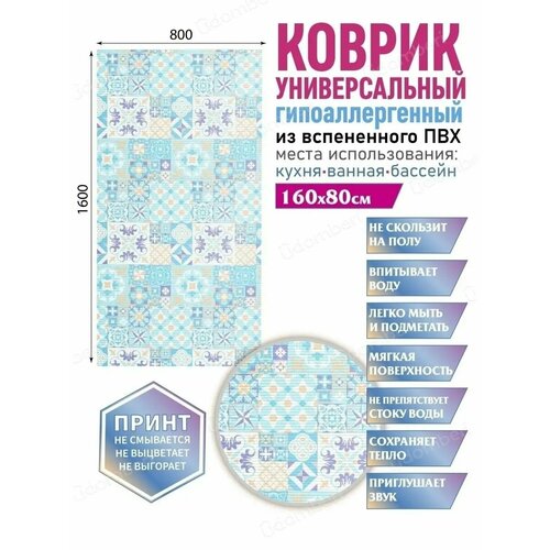 Коврик для ванны или душа в эстетичном дизайне - стильный интерьерный элемент, который станет эффектным украшением комнаты. Универсальный аксессуар толщиной 3 мм выполнен в оптимальном размере: длина - 160 см, ширина - 80 см, изготовлен из гипоаллергенного материала - вспененного ПВХ. Перфорированный «половик» прямоугольной формы украшен стильным принтом, который не смывается, не выцветает и не выгорает, долго радует вас насыщенностью цвета и яркостью декоративного рисунка в виде ракушек или камушков, цветов и растений, красивых узоров. Износостойкий ковер можно расположить в ванной комнате, чтобы опускать на него ноги после купания без риска поскользнуться и упасть. Его можно положить около стиральной машины, около унитаза в туалете. Модный аксессуар уютно украсит совмещенный санузел в доме или квартире. Красивый коврик с очень мягкой поверхностью не скользит по полу, впитывает воду, не препятствует ее активному стоку, приглушает звуки и сохраняет тепло. Современную модель с антискользящей основой выбирают для сауны или бани на даче, для расположения у лесенки бассейна или в душе для водных процедур. Защитный аксессуар важен для вашей безопасности - он исключает опасность поскользнуться на мокрой и скользкой плитке. Гибкий коврик легко скручивается в рулон для хранения и не занимает много места в шкафу. Он прост в уходе: его можно мыть в воде с мыльным раствором вручную, выбирать для очищения стирку в машинке - автомат. Противоскользящий коврик - практичное приобретение для взрослых женщин и мужчин, хороший подарок для родных и близких, для друзей с детьми на новоселье, любой другой праздник, в том числе на день рождения. В линейке бренда представлены модели в сочетаниях светлых и темных цветов, с различными рисунками, в том числе в морском стиле. Долговечную «дорожку» выбирают в виде домашнего или дачного комнатного аксессуара, используют в любое время года: в летний или зимний, осенний или весенний период, в помещении или на улице. Комплект поставки включает один предмет: влаговпитывающий коврик (1 штука). Товар поставляется в защитной упаковке для сохранности изделия в процессе доставки покупателю из нашего магазина. Произведено в России.