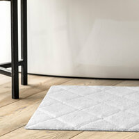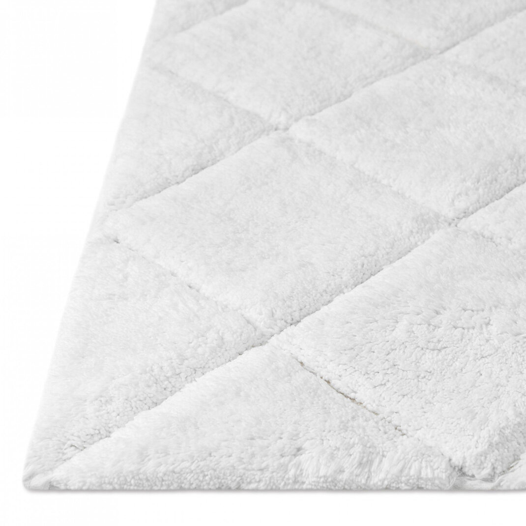 Коврик для ванной Родос. Этот коврик размера 60х90 см выполнен из высококачественного 100% хлопка плотностью 1700 г/м², что делает его более объемным, прочным и износостойким. Хлопковые коврики не раздражают кожу, не вызывают дискомфорта и аллергии. Хлопок очень гигроскопичен, он может впитывать влагу в объеме до 20% от собственного веса, оставаясь сухим и тактильно приятным. Белоснежный коврик Родос украшен рельефными ромбами, которые подчеркивают пышность махровой ткани. Благодаря стриженым махровым петлям коврик очень пушистый и мягкий, на него приятно становиться босыми ногами. Коврик практичен и гигиеничен, его можно стирать в домашних условиях, используя деликатный режим машинной стирки. Уход, перед первым использованием изделие необходимо постирать. Рекомендуемая стирка при температуре 30 °C, используя отжим на средних оборотах с заполнением барабана не менее 70%. Не пересушивать изделие для сохранения мягкости и пушистости ворса.4. Гладить не более 150 °C. Не использовать отбеливатель. Сушка при низкой температуре.