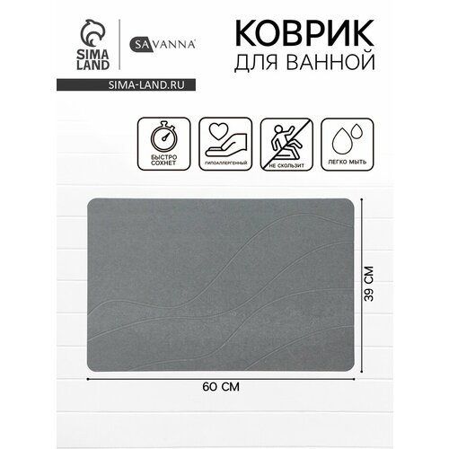 С размерами 39 х 60 см, коврик идеально вписывается в пространство, не создавая визуального нагромождения. Он изготовлен из натурального диатомита, известного своими превосходными противоскользящими свойствами, что обеспечивает безопасность на мокрых поверхностях.