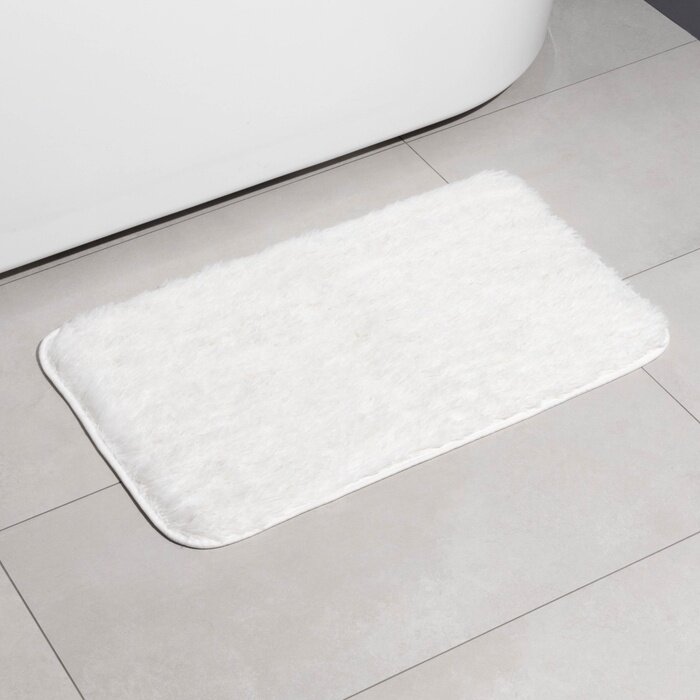 Коврик для ванной прямоугольный Доляна «Пушистик», 49×79 см, цвет белый