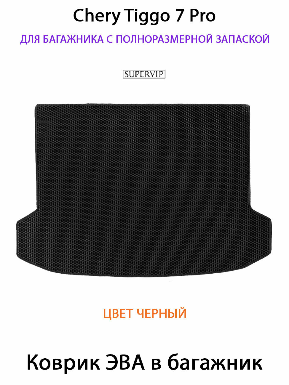 Коврик ЭВА в багажник с полноразмерной запаской Chery Tiggo 7 Pro. ЕВА соты SUPERVIP для Чери Тигго 7 Про. Черный цвет.: сравнение цен, характеристики, фото, актуальное наличие и цены.