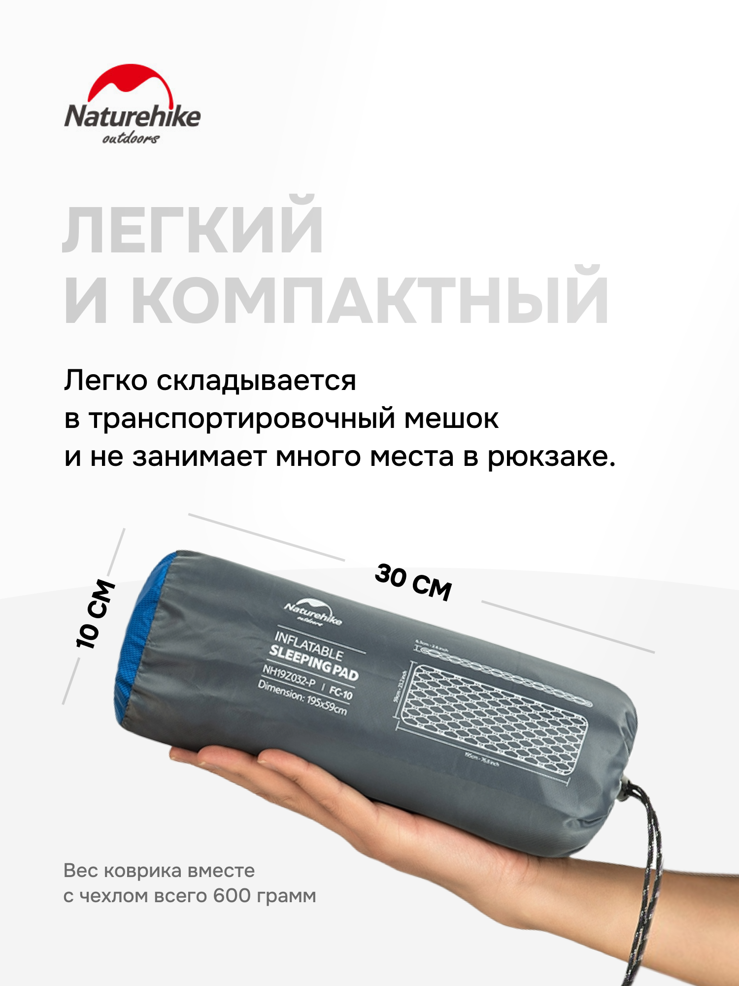 Надувной коврик для путешествий Naturehike FC10, 195х59х6,5 см, цвет серый, NH19Z001-P: сравнение цен, характеристики, фото, актуальное наличие и цены.