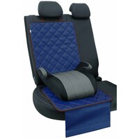 Коврик под детское автокресло. Искусственная кожа. Цвет: синий с коричневой прострочкой Ромб.