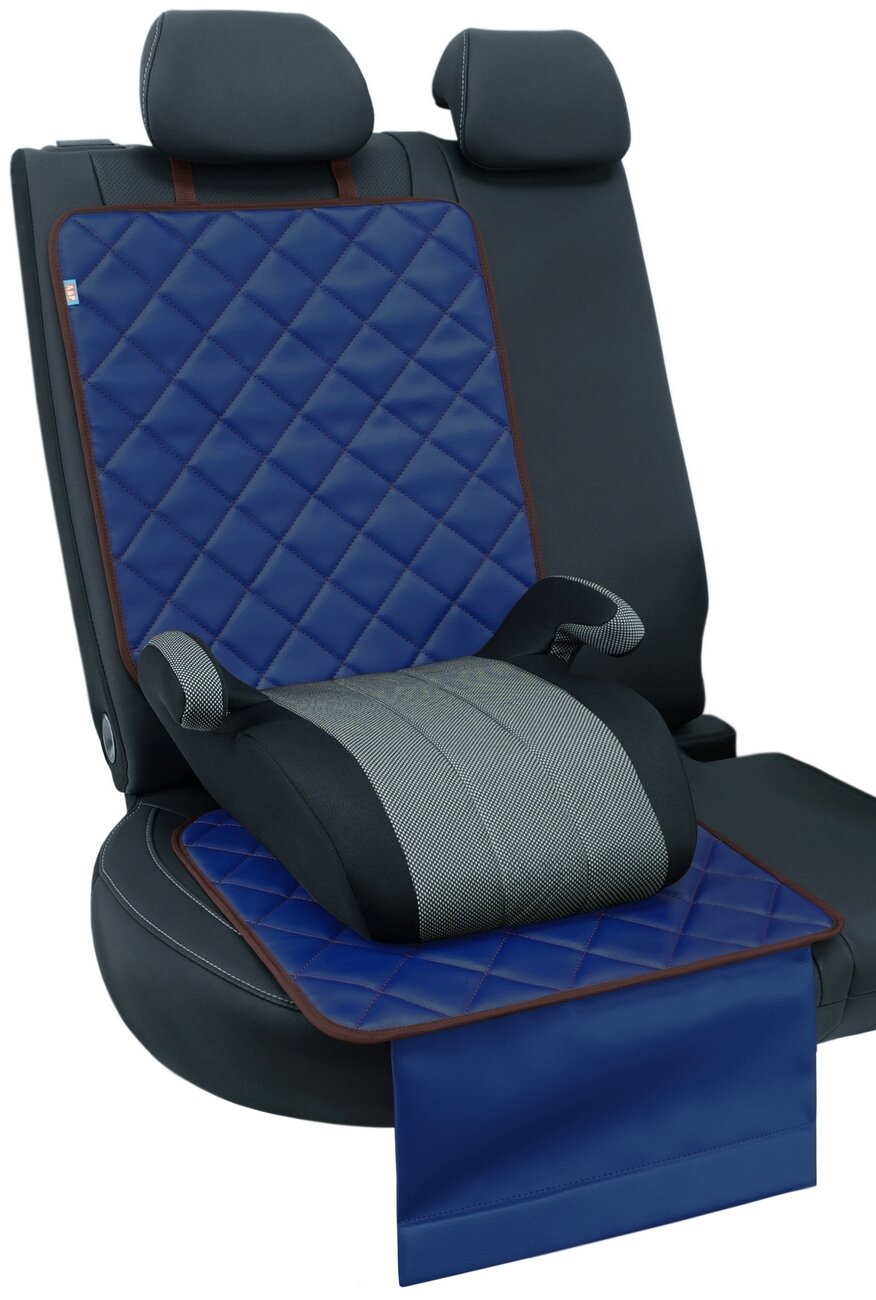 Купить Коврик под детское автокресло. Искусственная кожа. Цвет: синий с коричневой прострочкой Ромб. с доставкой по всей России.
