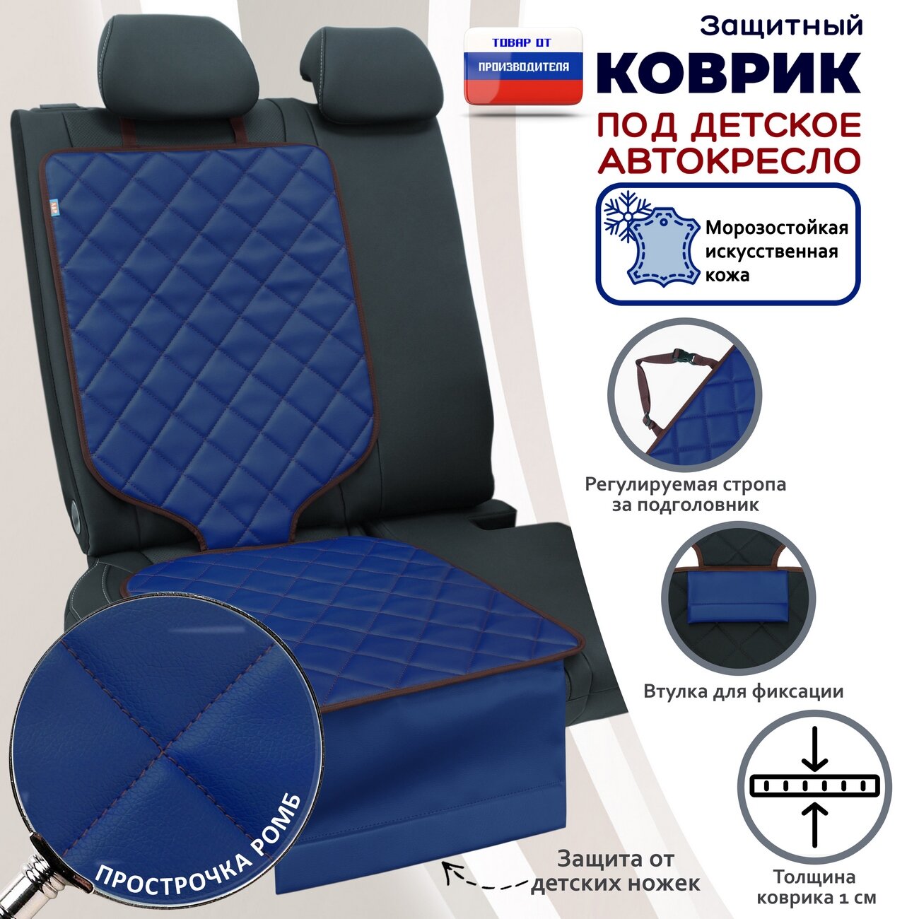 Коврик под детское автокресло. Искусственная кожа. Цвет: синий с коричневой прострочкой Ромб.: сравнение цен, характеристики, фото, актуальное наличие и цены.