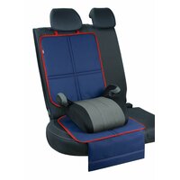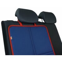 Имеет высокую спинку для защиты спинки автомобильного сиденья, дополнительный фартук на нижней части накидки под ноги ребенка, а также фиксирующую втулку для предотвращения ее сползания.