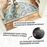 Купить Коврик придверный в прихожую для обуви , серый с узором полукруглый 90х45 см с доставкой по всей России.