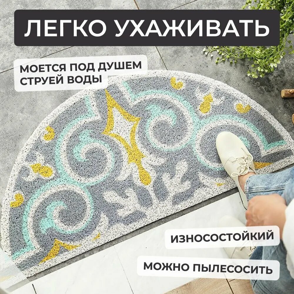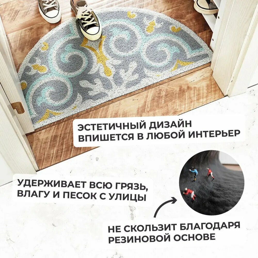 Коврик придверный в прихожую для обуви , серый с узором полукруглый 90х45 см: сравнение цен, характеристики, фото, актуальное наличие и цены.