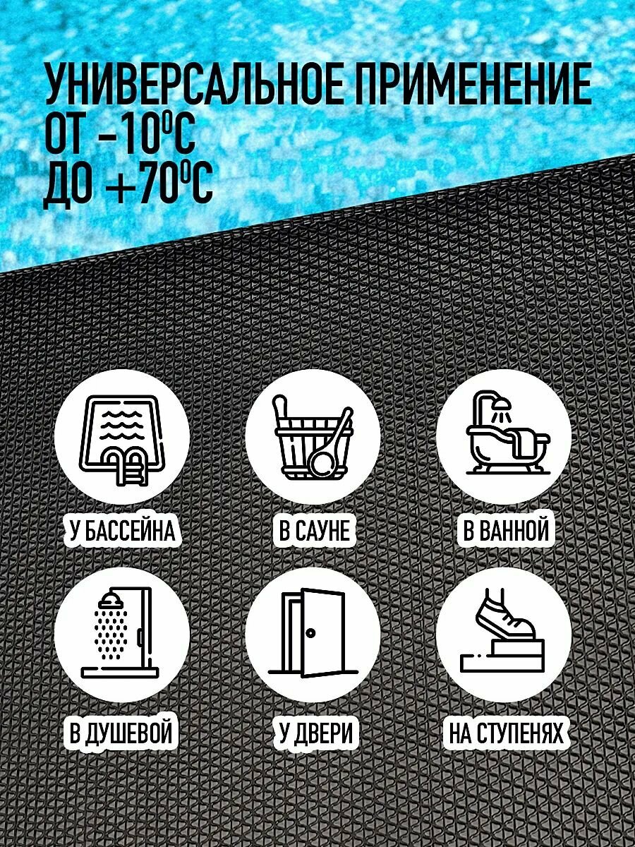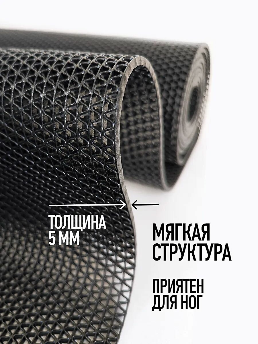Универсальная противоскользящая подложка – аксессуар, который поможет сделать скользкие напольные покрытия (плитка, ламинат) комфортными и безопасными. Дорожка выполнена из прочного и износостойкого ПВХ. Амортизирующий материал не боится сырости. Он не накапливает влагу, благодаря чему не подвержен образованию плесени. Коврик высотой 5 мм можно использовать как в помещениях, так и на улице. Он станет отличным выбором для обустройства бани или бассейна. Антискользящий половик прямоугольной формы будет актуален для сауны, хамама и других мест с повышенной влажностью. Ковёр поможет обеспечить нужный уровень безопасности на промышленных предприятиях и торговых площадках. Изделие имеет структуру решетки с мелкими отверстиями и секциями зиг заг. Оно не только защищает от скольжения, но и препятствует попаданию грязи в помещение. Задерживающий мусор и песок аксессуар станет отличным выбором в качестве уличного придверного коврика. Практичная и простая в использовании принадлежность легко очищается от загрязнений с помощью любых моющих средств, можно мыть прям под душем. Она станет хорошим приобретением для дома, квартиры и дачи. Нескользящий коврик поставляется в рулоне, ширина рулона 120 сантиметров. Он отлично держит форму и отличается высокой износостойкостью. Изделие из качественных материалов подойдет для прихожей и веранды. На него удобно ставить грязную обувь. Дорожка из ПВХ незаменима в ванной и душе. Она поможет не подскользнуться на скользком полу в парилке или душевой кабине. Противоскользящее и грязезащитное покрытие подходит для использования в помещениях с большим потоком людей. Оно не подвержено коррозии и гниению, благодаря чему прослужит вам долго. Универсальный коврик можно использовать в гостиницах, отелях и офисных зданиях. Он станет хорошим выбором для промышленных объектов или производственных цехов с высоким уровнем влажности.