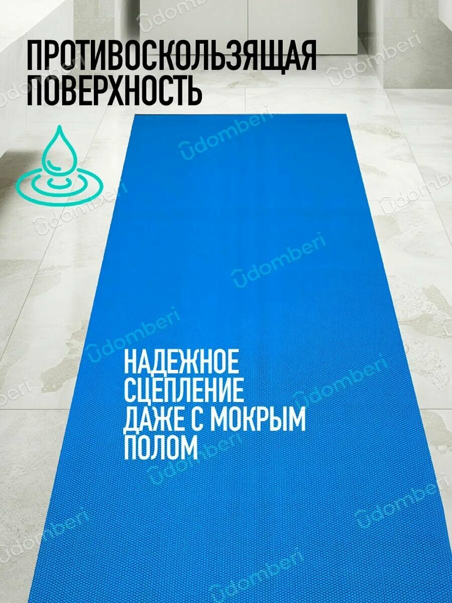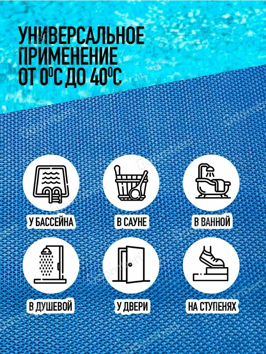 Универсальная противоскользящая подложка – аксессуар, который поможет сделать скользкие напольные покрытия (плитка, ламинат) комфортными и безопасными. Дорожка выполнена из прочного и износостойкого ПВХ. Амортизирующий материал не боится сырости. Он не накапливает влагу, благодаря чему не подвержен образованию плесени. Коврик высотой 5 мм можно использовать как в помещениях, так и на улице. Он станет отличным выбором для обустройства бани или бассейна. Антискользящий половик прямоугольной формы будет актуален для сауны, хамама и других мест с повышенной влажностью. Ковёр поможет обеспечить нужный уровень безопасности на промышленных предприятиях и торговых площадках. Изделие имеет структуру решетки с мелкими отверстиями и секциями зиг заг. Оно не только защищает от скольжения, но и препятствует попаданию грязи в помещение. Задерживающий мусор и песок аксессуар станет отличным выбором в качестве уличного придверного коврика. Практичная и простая в использовании принадлежность легко очищается от загрязнений с помощью любых моющих средств, можно мыть прям под душем. Она станет хорошим приобретением для дома, квартиры и дачи. Нескользящий коврик поставляется в рулоне, ширина рулона 90 сантиметров. Он отлично держит форму и отличается высокой износостойкостью. Изделие из качественных материалов подойдет для прихожей и веранды. На него удобно ставить грязную обувь. Дорожка из ПВХ незаменима в ванной и душе. Она поможет не подскользнуться на скользком полу в парилке или душевой кабине. Противоскользящее и грязезащитное покрытие подходит для использования в помещениях с большим потоком людей. Оно не подвержено коррозии и гниению, благодаря чему прослужит вам долго. Универсальный коврик можно использовать в гостиницах, отелях и офисных зданиях. Он станет хорошим выбором для промышленных объектов или производственных цехов с высоким уровнем влажности.