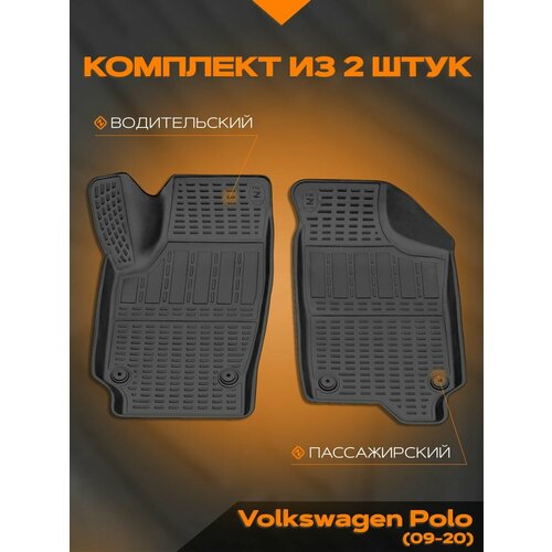 Купить Коврик салонный для Volkswagen Polo (09-20) полиуретановый (передний ряд сидений) с доставкой по всей России.