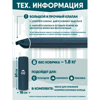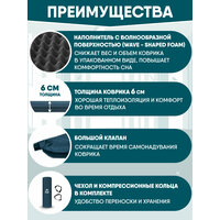 Наполнитель - вспененный материал с волнообразной поверхностью (Wave - Shaped Foam) снижает вес и объем коврика в упакованном виде и повышает комфортность сна. Большая толщина коврика 6 см обеспечит хорошую теплоизоляцию и комфорт во время отдыха Нескользкий, прочный и приятный на ощупь материал полиэстер 75D PVC В комплекте компресионные резиновые кольца и чехол для аккуратного хранения и переноски Компактный и легкий, в сложенном состоянии не занимает много места Большой клапан сокращает время самонадувания коврика Характеристики: Размер 188 x 60 x 6 см Цвет серый Ткань внешняя Полиэстер 75D PVC Тип наполнителя/Плотность Вспененный материал с волнообразной поверхностью (Wave - Shaped Foam) Клапан Пластиковый Большой Размер в сложенном виде 22 х 60 см Вес 1,50 кг