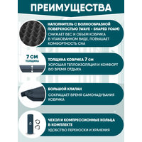 Характеристики: Фиксированная подушка Фиксированные компрессионные ремни Наполнитель - вспененный материал с волнообразной поверхностью (Wave - Shaped Foam) снижает вес и объем коврика в упакованном виде и повышает комфортность сна. Нескользкий, прочный и приятный на ощупь материал полиэстер 75D PVC Antislip-поверхность - точечное нанесение силикона на нижнюю поверхность коврика предотвращает скольжение Чехол для аккуратного хранения и переноски Компактный и легкий, в сложенном состоянии не занимает много места Два клапана сокращают время самонадувания коврика