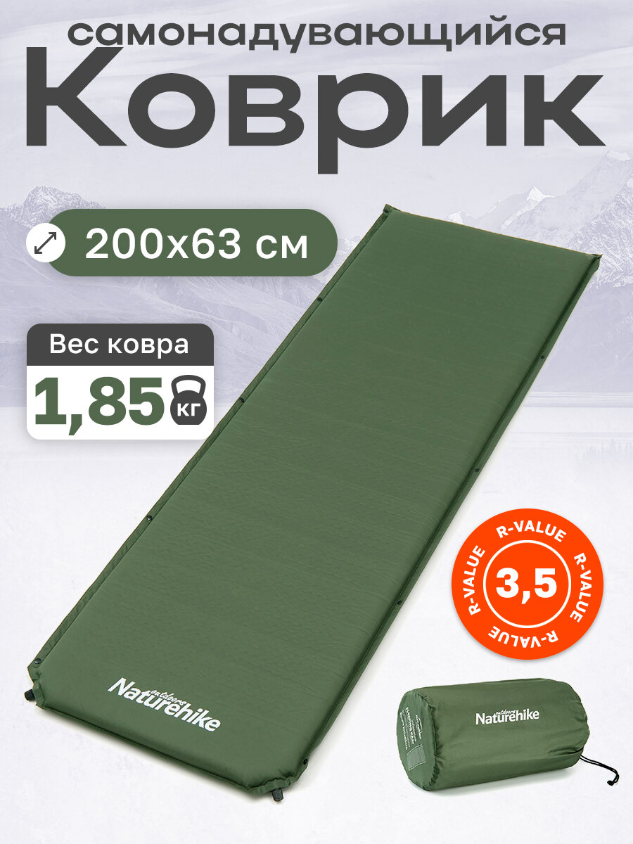 Коврик туристический самонадувающийся состёгивающийся Naturehike D03 200x63x5см, зелёный=v=: сравнение цен, характеристики, фото, актуальное наличие и цены.