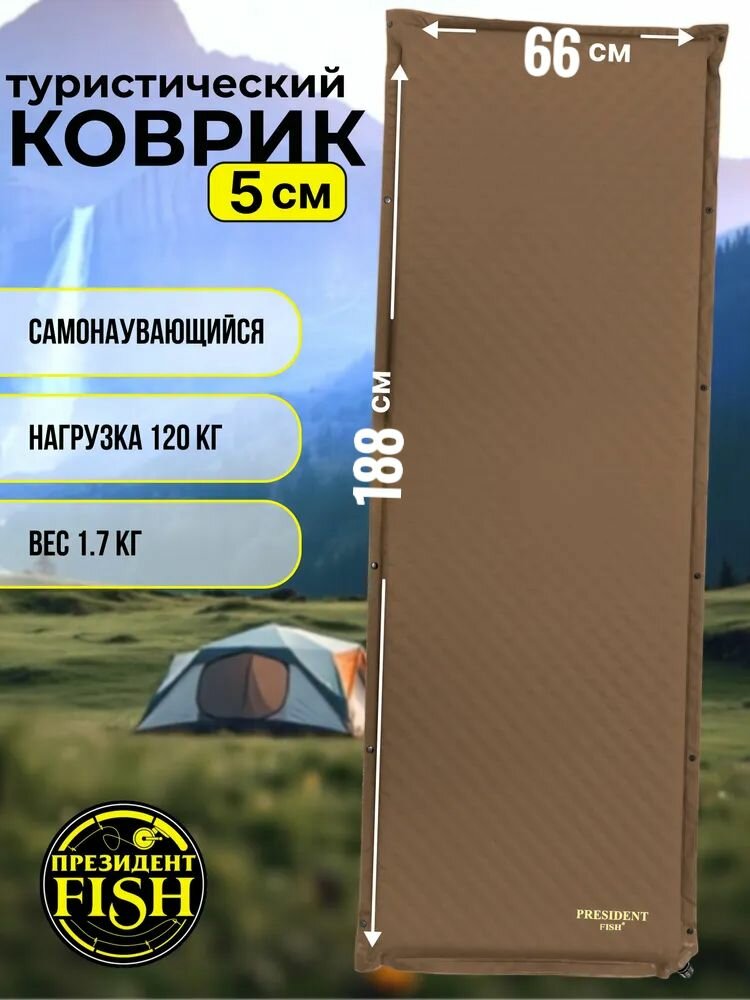 Коврик самонадувающийся туристический PRESIDENT FISH 8895101 PF-05WP коричневый: сравнение цен, характеристики, фото, актуальное наличие и цены.