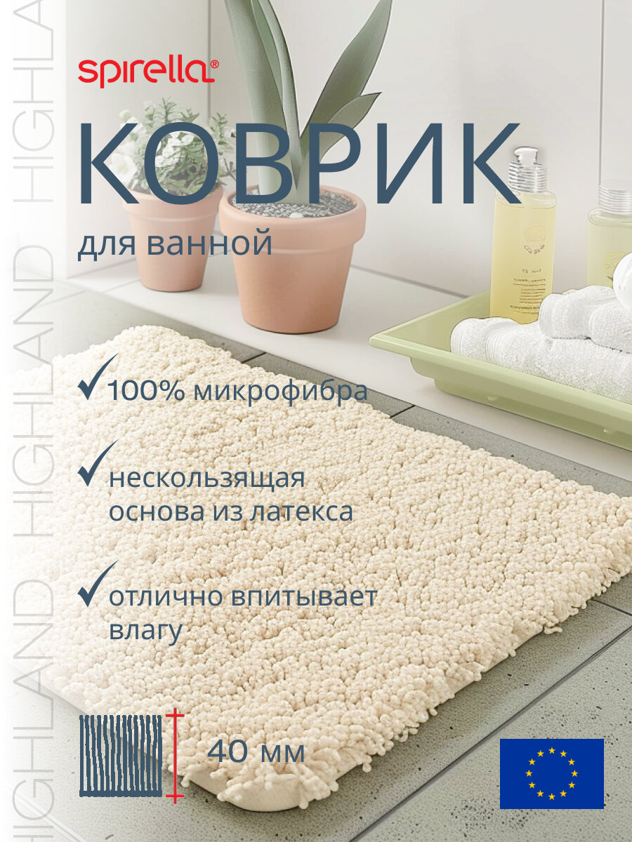 Купить Коврик для ванной 70×120см Spirella Highland антискользящий, полиэстер, светло-бежевый с доставкой по всей России.