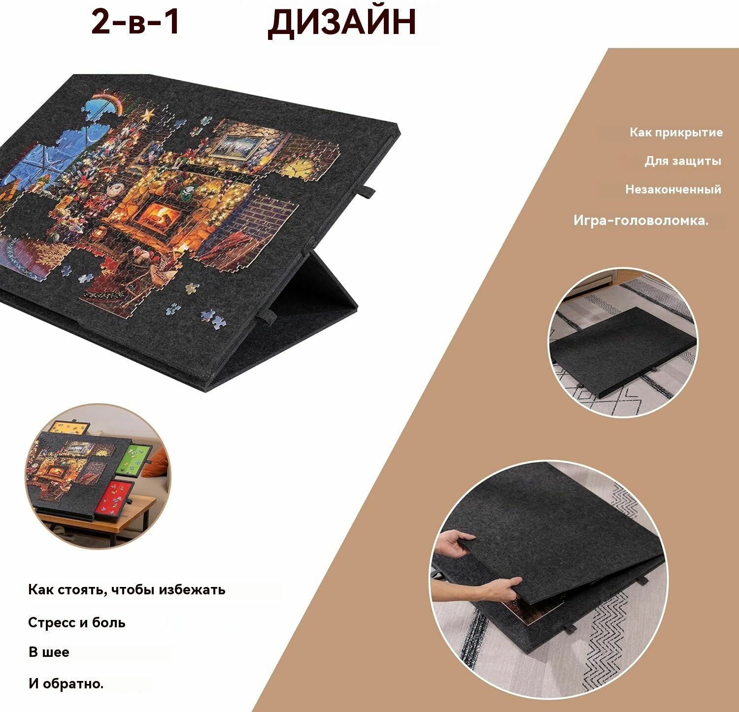 Коврик-стол для пазлов с ящиками - это незаменимый помощник для любителей собирать пазлы. Он обеспечивает комфортное и удобное размещение деталей пазла, а также позволяет хранить все необходимые аксессуары в специальных ящиках.