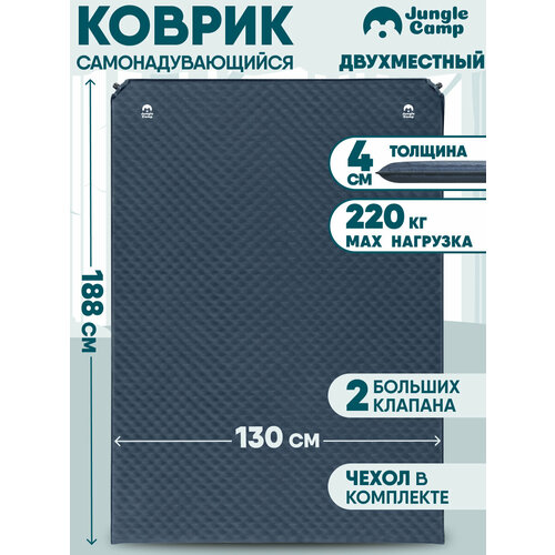 Самонадувающийся двухспальный кемпинговый коврик Jungle Camp Camper 40 Double толщиной 4 см прекрасно подойдет как для многодневного кемпинга, так и непродолжительного отдыха на природе. Большой размер коврика позволяет максимально эффективно использовать пространство палатки. Обеспечивает теплоизоляцию по всей занимаемой площади. Наполнитель - вспененный материал с волнообразной поверхностью (Wave - Shaped Foam) снижает вес и объем коврика в упакованном виде и повышает комфортность сна. Внешний материал коврика - прочный, нескользкий и приятный на ощупь полиэстер 75D PVC. У коврика два больших клапана, что позволяет ускорить процесс самонадувания. Ценится любителями двойных спальников. Также его можно сложить вдвое и получить толстый и комфортный коврик под один спальник.