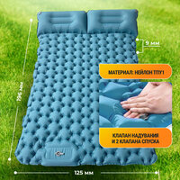 Коврик туристический Hiki GoTwo на 2 человек предназначен для активного отдыха, туристических мероприятий, а также походов, для пляжа или кемпинга. При развертывании двухместный надувной лежак занимает пространство 196 см в длину и 125 см в ширину, что позволяет комфортно разместить двух человек.