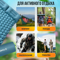 Матрас для сна надувной складной в сложенном виде занимает небольшой объем, удобно размещаясь в рюкзаке, и его вес составляет около 1,5 кг, что существенно облегчает переноску. На поверхности коврика нанесены небольшие рифления или точечные впадины для лучшего сцепления со спальным мешком и минимизации скольжения, что гарантирует комфорт и безопасность пользователя во время пользования ковриком для отдыха или сна на природе.