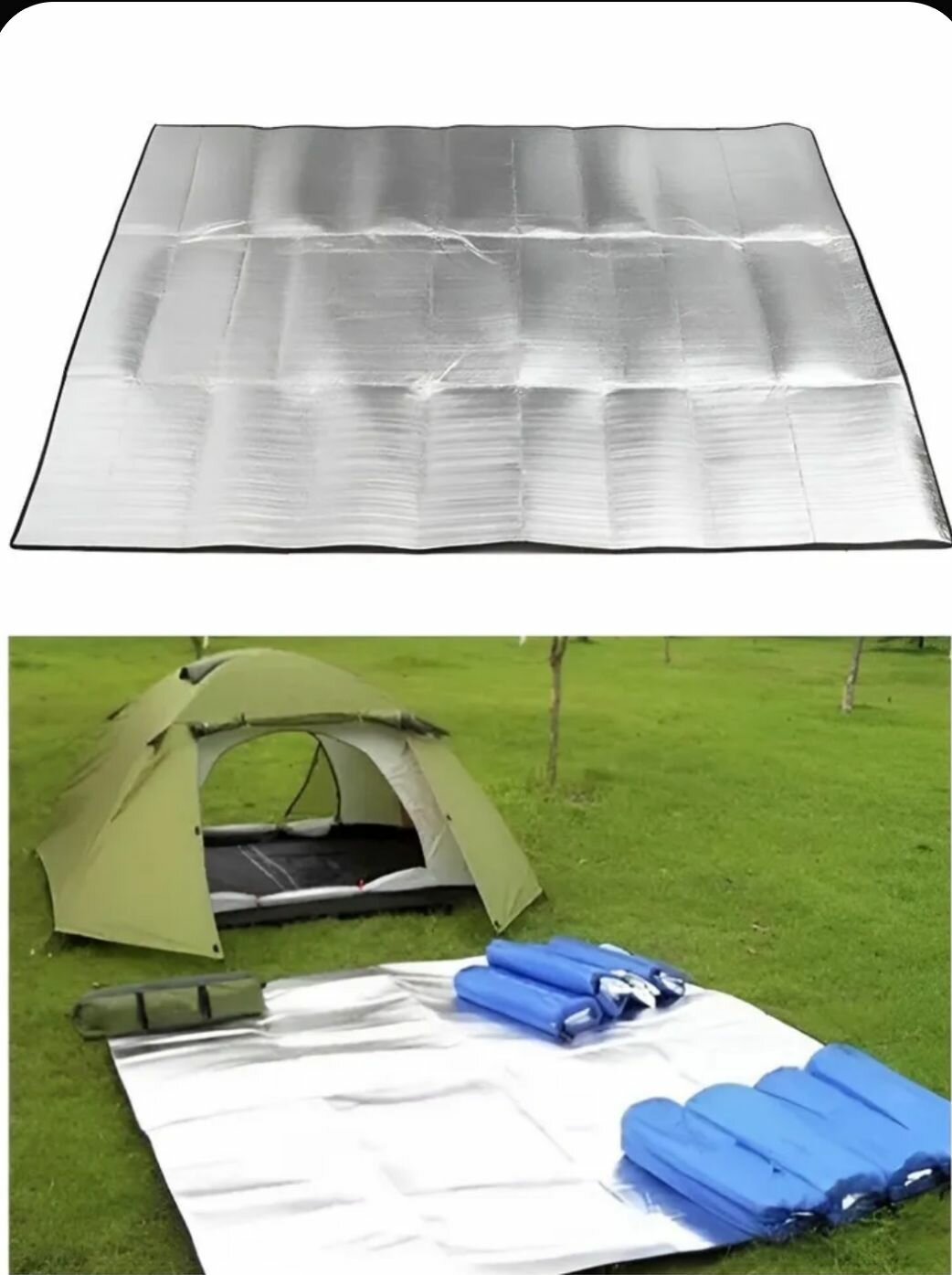Коврик фольгированный для пола или палатки размером 240*240 см - это прочный и удобный аксессуар, который может использоваться в качестве защиты от холода, влаги и грязи на полу вашей палатки. Он состоит из нескольких слоев, включая алюминиевую фольгу, которая обеспечивает утепление и защиту от влаги, а также дополнительный слой из прочного материала, который делает коврик надежным и износостойким. Трехслойное покрывало туристического коврика состоит из двух внешних слоев алюминиевой пленки из ПВХ и внутреннего слоя из плотного хлопка Коврик фольгированный для пола палатки легко складывается и хранится в специальном чехле, который обеспечивает его компактность и удобство при транспортировке. Он также легко моется и очищается от грязи и пыли, что делает его идеальным выбором для кемпинга, походов и других видов отдыха на природе. Туристический коврик — коврик, используемый для теплоизоляции между телом лежащего человека и почвой, а также для повышения комфорта сна туриста и предохранения спального мешка от влаги и повреждений. Можно использовать как в палатке, так и без нее. Коврик туристический более практичен и удобен, чтобы брать его с собой для чем походная пенка. Компактный коврик туристический складывается в переносную сумку с застежками, что обеспечивает легкость в транспортировке и экономию места. Можно использовать как в палатке, так и без нее. Размер собранного коврика в чехле 60х30х10 см. Вес коврика: 350 грамм
