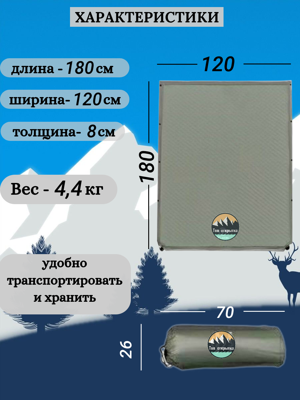 Коврик туристический, толщина 8см, двухспальный, самонадувающийся. Темно-зеленый: сравнение цен, характеристики, фото, актуальное наличие и цены.