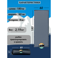 Размеры коврика составляют 180 см в длину, 60 см в ширину и 8 см в толщину, что позволяет эффективно использовать внутреннюю площадь палатки и создать просторное и уютное место для отдыха.