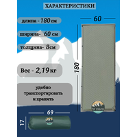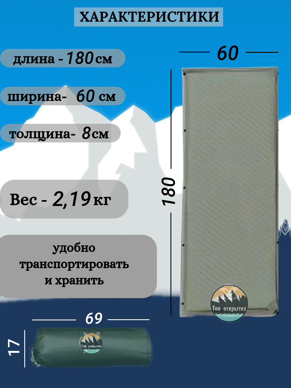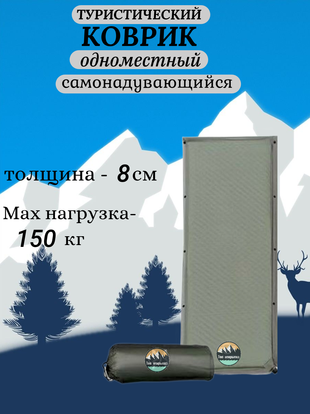 Коврик туристический, толщина 8см, самонадувающийся, одноместный. Темно-зеленый: сравнение цен, характеристики, фото, актуальное наличие и цены.