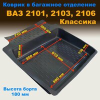 Коврик в багажник для ВАЗ 2101, 2103, 2106 Классика (высокий борт 180 мм) (CLT) пластик: сравнение цен, характеристики, фото, актуальное наличие и цены.