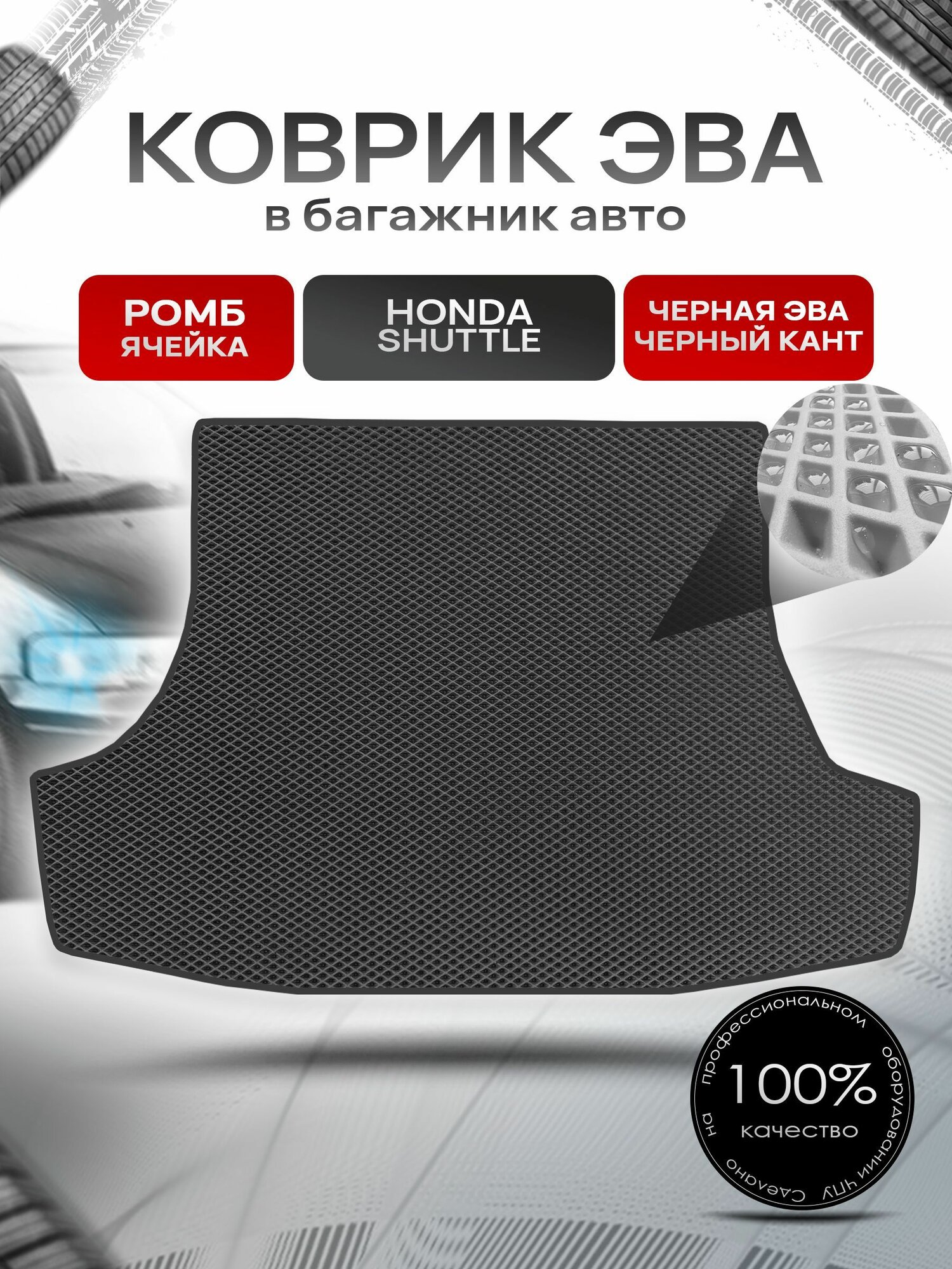 Коврик в багажник ЭВА ромб для авто Honda Shuttle / Хонда 1994 — 2000 Чёрный с Чёрным кантом: сравнение цен, характеристики, фото, актуальное наличие и цены.