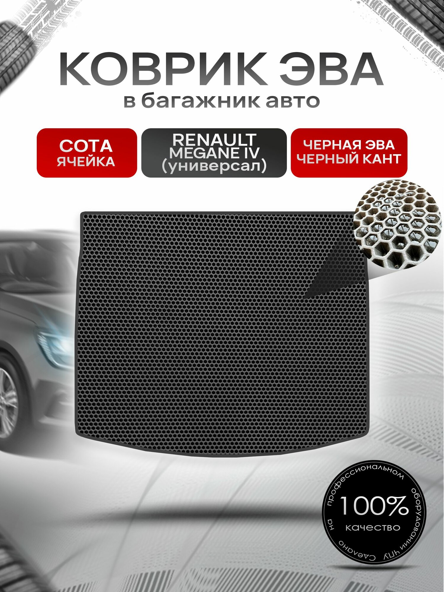 Коврик в багажник ЭВА сота для Рено Меган 4 (универсал) / Renault Megane 4 2016 + Чёрный с Чёрным кантом: сравнение цен, характеристики, фото, актуальное наличие и цены.