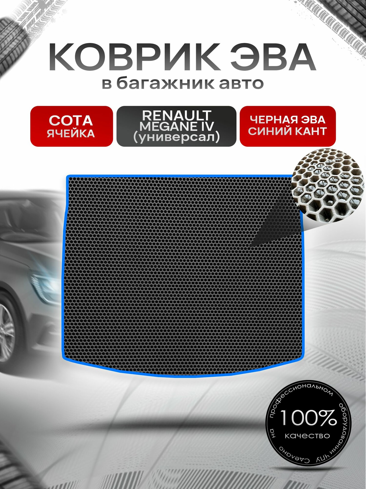 Коврик в багажник ЭВА сота для Рено Меган 4 (универсал) / Renault Megane 4 2016 + Чёрный с Синим кантом: сравнение цен, характеристики, фото, актуальное наличие и цены.