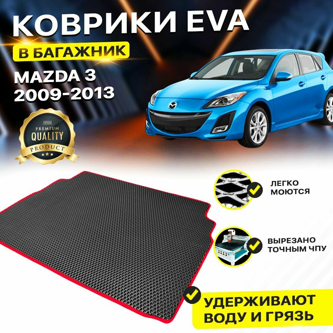 Коврик в багажник Mazda Мазда 3 BL седан 2009-2013 EVA ЕВА ЭВА ромб черный: сравнение цен, характеристики, фото, актуальное наличие и цены.