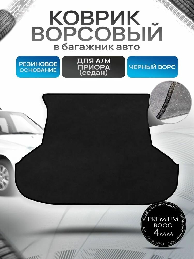 Коврик в багажник ворсовый на резиновой основе премиум для авто Приора / Priora (Седан) Черный ворс: сравнение цен, характеристики, фото, актуальное наличие и цены.