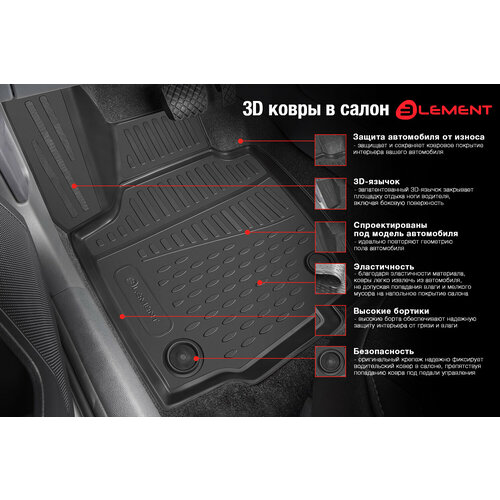 | Особенности | 3D-коврик, с бортиками, с фиксаторами |