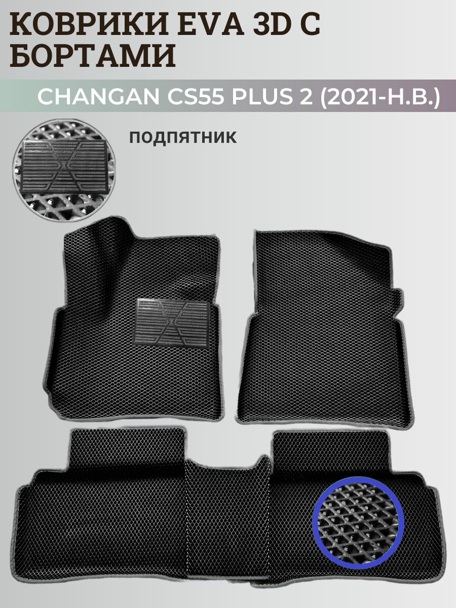 Купить Коврики Чанган CS55 плюс, Юни-S / Changan CS55 plus, Uni-S (2021-н. в.) с бортиками, 3D ковры EVA, ЕВА, ЭВА с бортами+подпятник с доставкой по всей России.