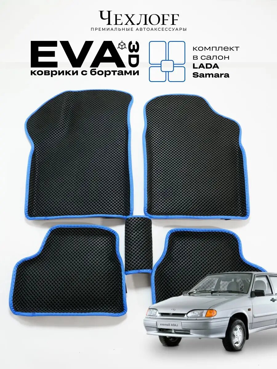 Коврики для автомобиля Чехлоff, комплект 5 штук, EVA, 3D, для Lada 2108, 2109, 2114, 2115, черный с синим кантом: сравнение цен, характеристики, фото, актуальное наличие и цены.
