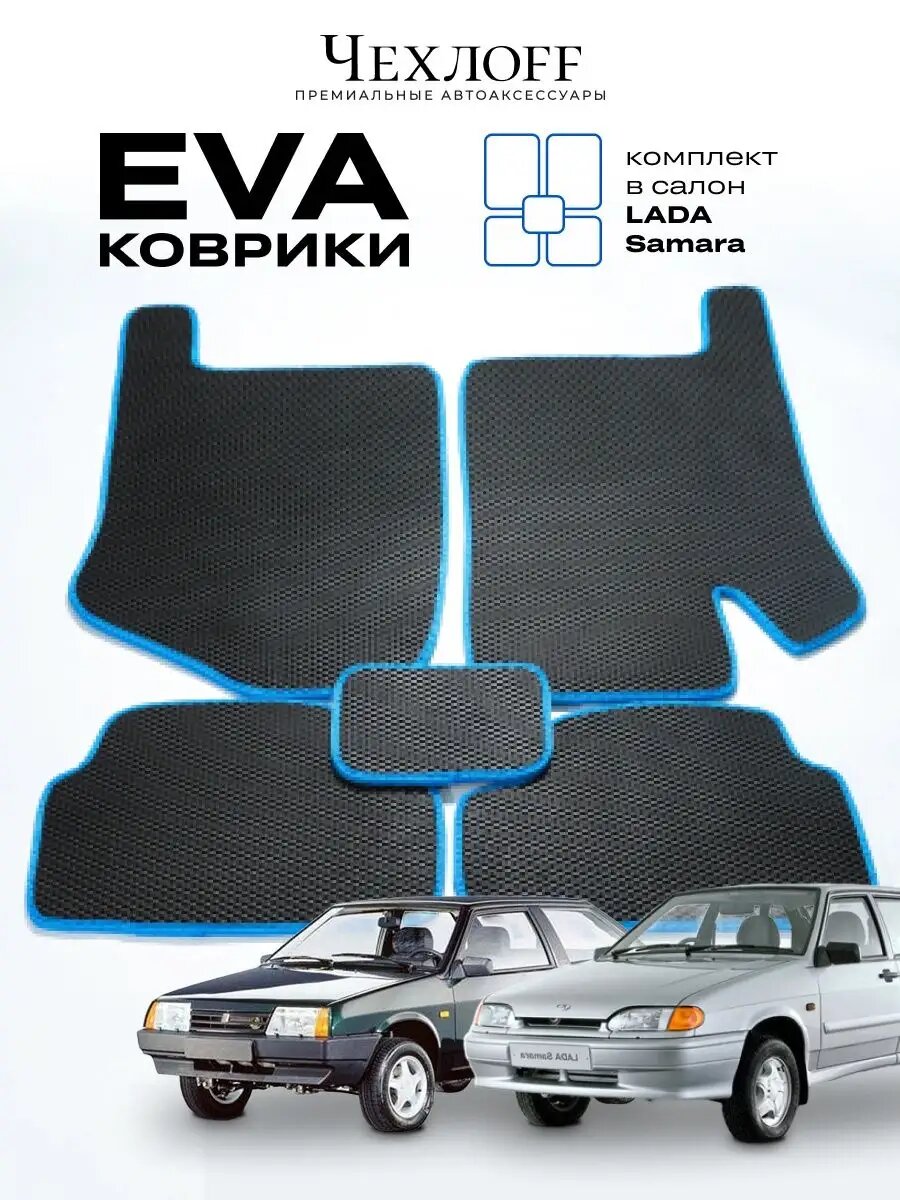 Коврики для автомобиля Чехлоff, комплект 5 штук, EVA, для Lada Samara 2108-2115, черные с синим кантом: сравнение цен, характеристики, фото, актуальное наличие и цены.