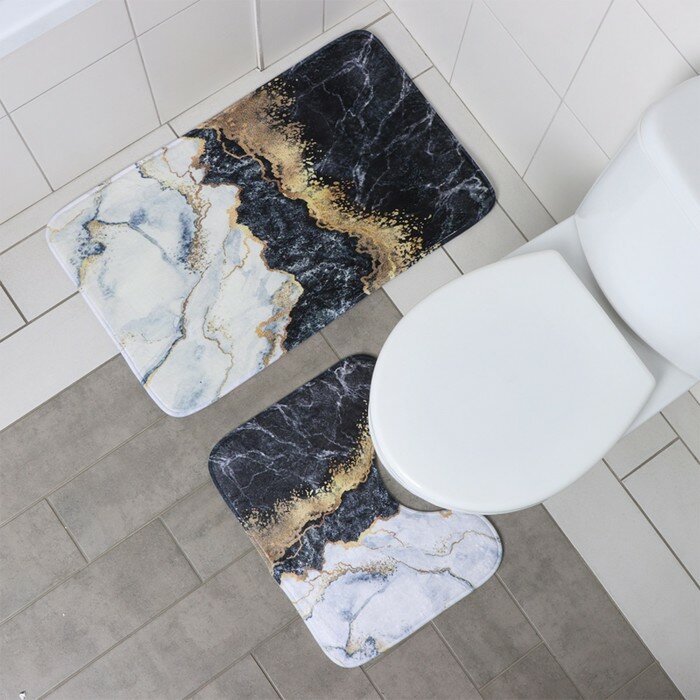 Коврики для ванной и туалета Доляна «Мрамор», 2 шт, 79×50 см, 50×39 см