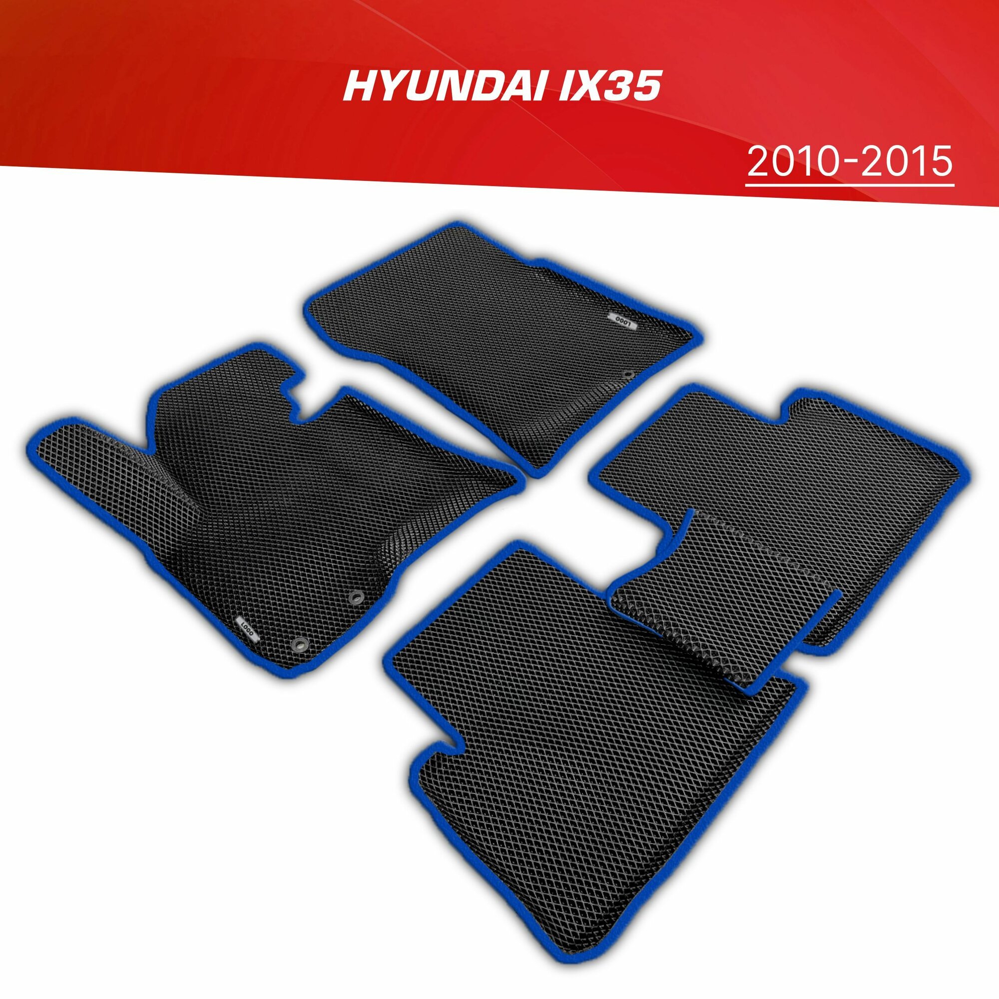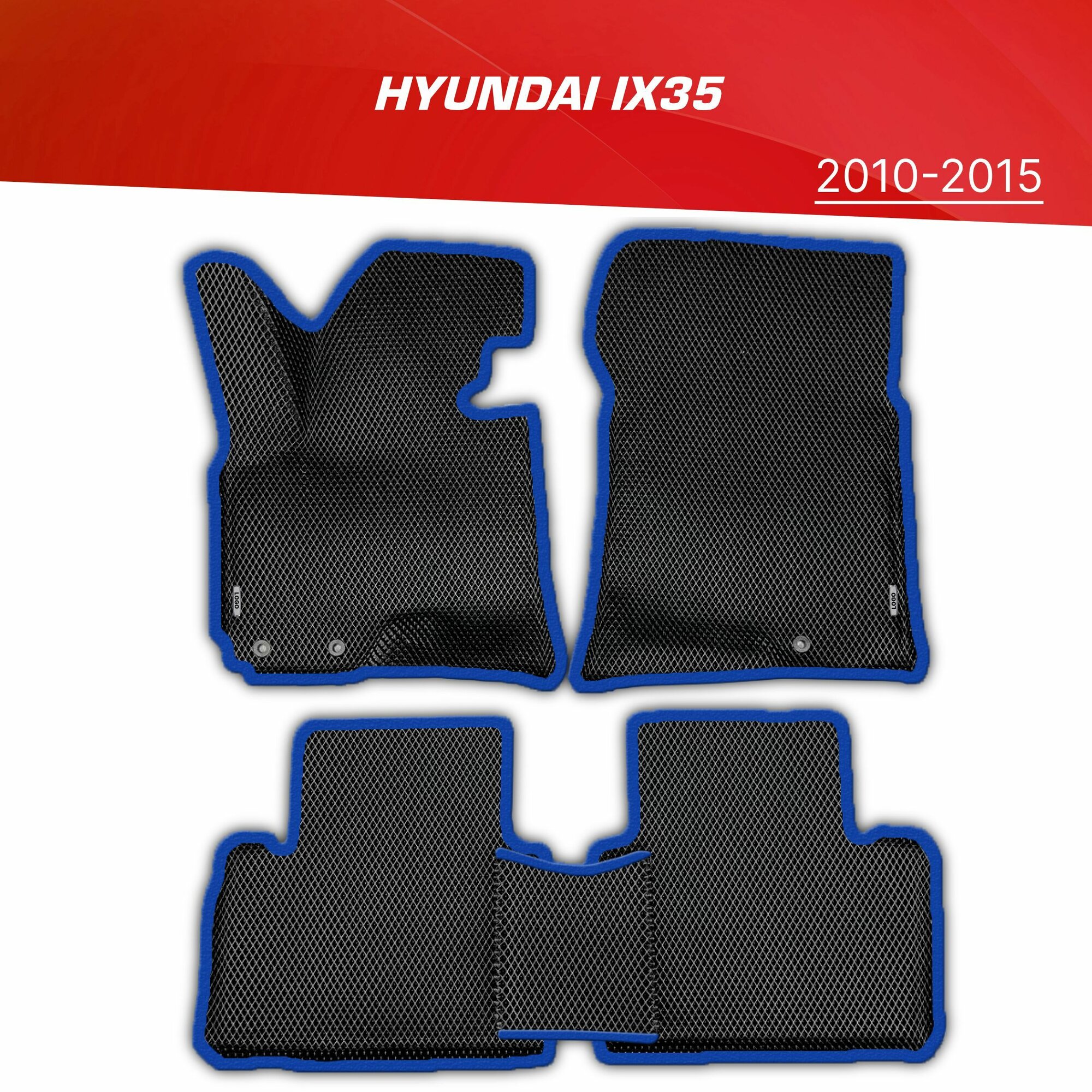 Купить Коврики EVA 3D с бортами Hyundai ix35 (2009-2015) + 2 логотипа Hyundai / ковры ЕВА (ЭВА) 3д с бортиками Хендай Ай Икс 34 с доставкой по всей России.