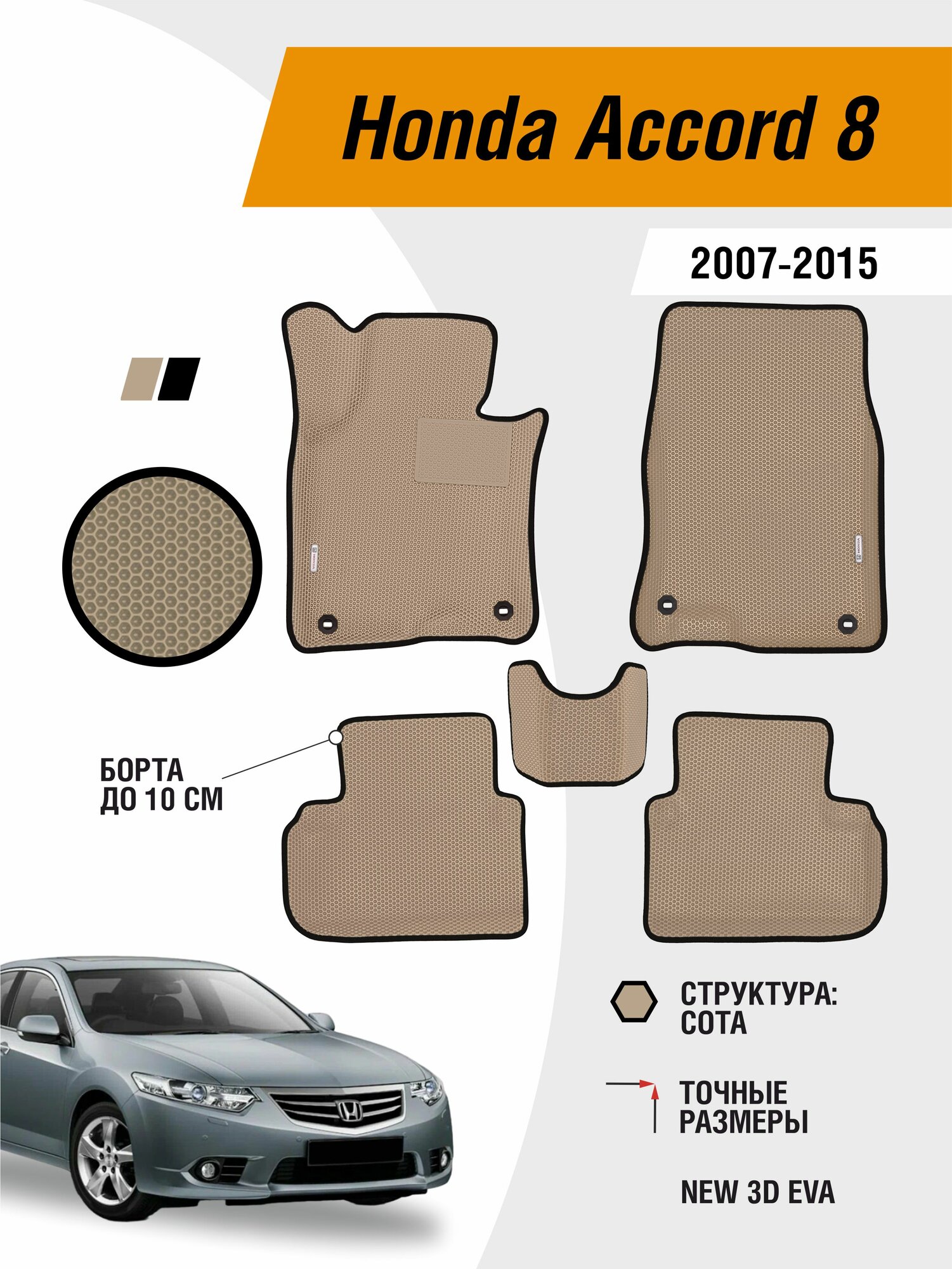 Купить Коврики Ева автомобильные Honda Accord 8 2007-2015 EVA ЭВА с бортами с доставкой по всей России.
