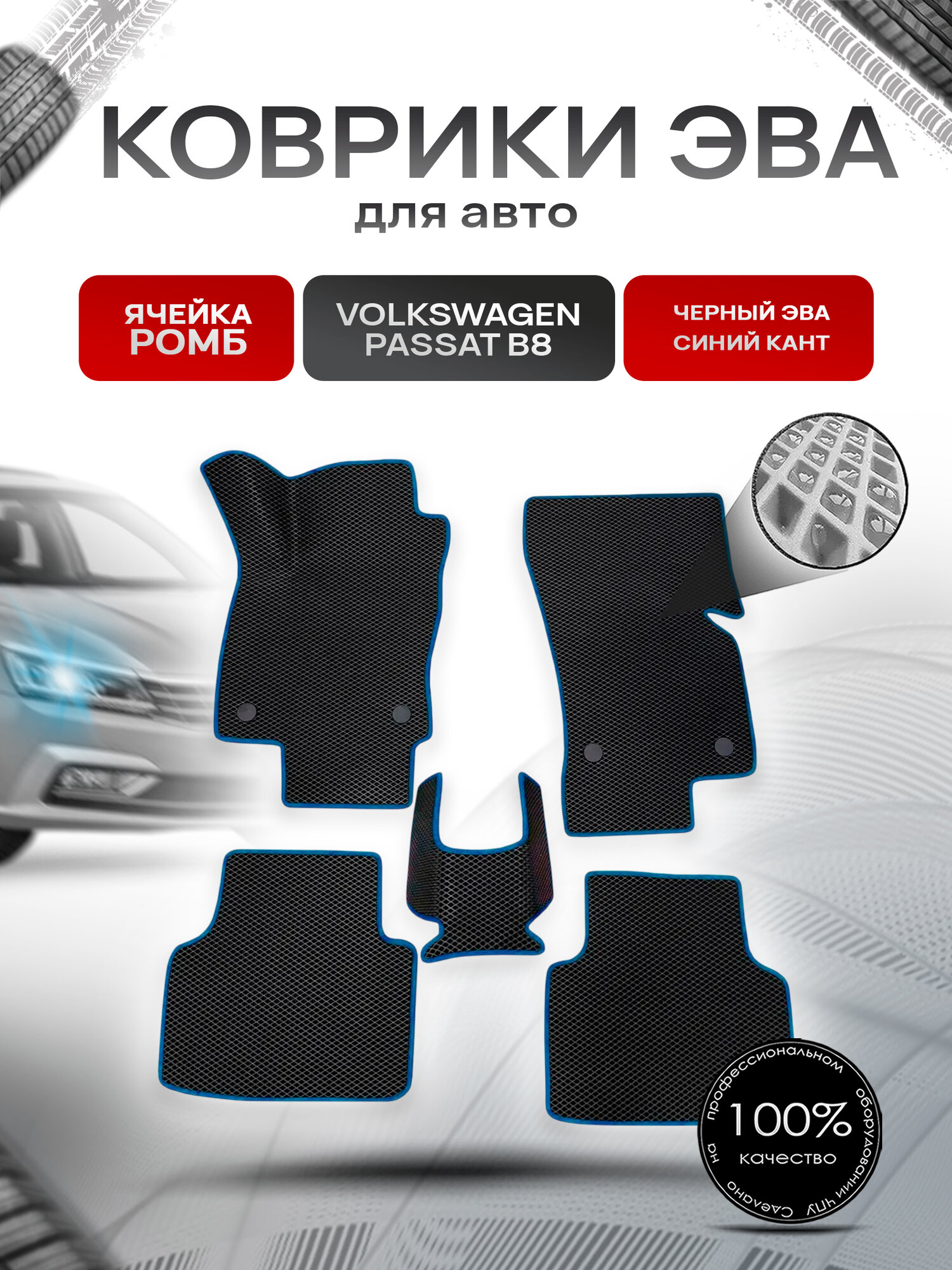 Коврики ЭВА Ромб для авто Volkswagen Passat / Фольцваген Пассат B8 2014-2022 Г. В. Чёрный с Синим кантом: сравнение цен, характеристики, фото, актуальное наличие и цены.