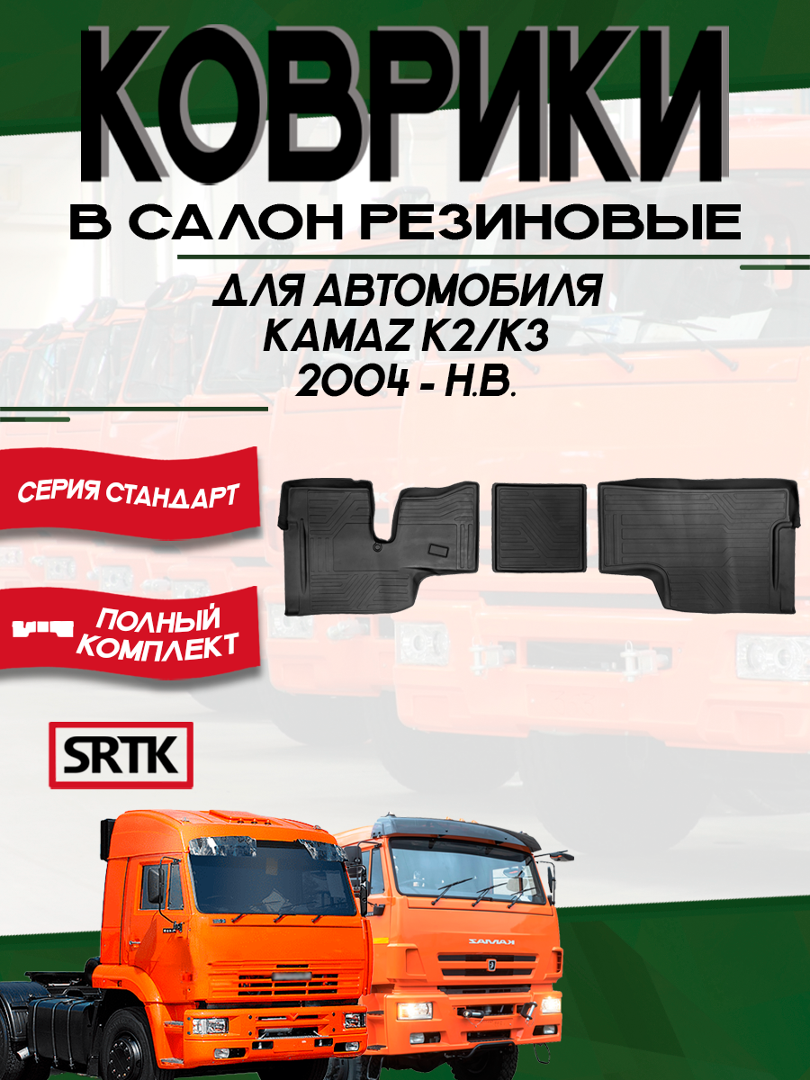 Коврики резиновые для автомобиля Камаз К2/К3 (2004-)/Kamaz K2/K3 (2004-) 3D STANDART SRTK (Саранск) комплект в салон: сравнение цен, характеристики, фото, актуальное наличие и цены.