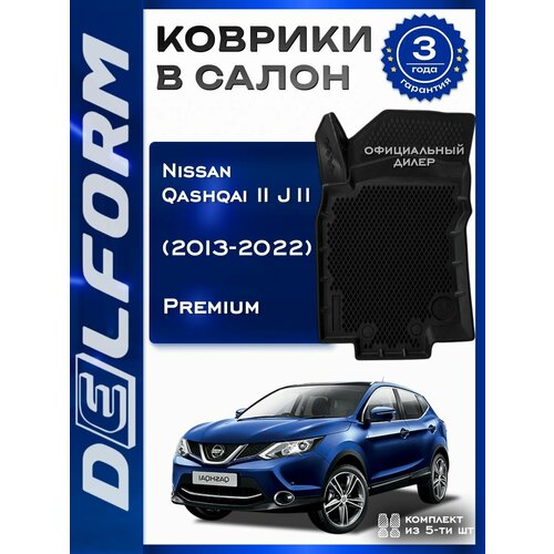 Коврики в машину Nissan Qashqai II «J11» (2013-2022) / полный набор в салон Ниссан Кашкай 2 с бортами и ячейками ЭВА 3Д / версия «Premium EVA 3D» Delform