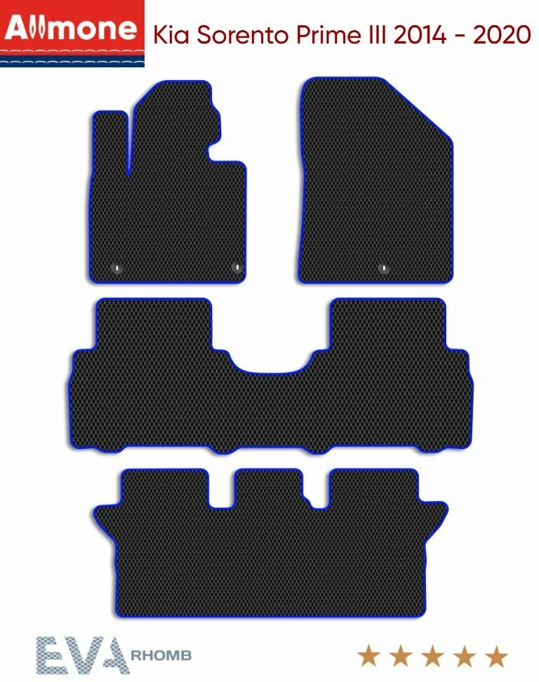 Коврики в салон автомобиля ЭВА Allmone для Kia Sorento Prime 3 (UM) 2014 — 2020 задний цельный, черные с синим кантом, 4шт. / Киа Соренто Прайм 3: сравнение цен, характеристики, фото, актуальное наличие и цены.