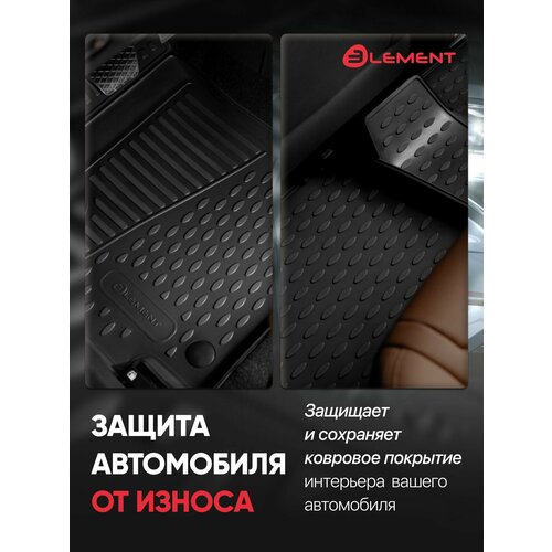 Функциональность: • идеально повторяют геометрию пола автомобиля • высокие борта обеспечивают надежную защиту интерьера от грязи и влаги • запатентованный 3D-язычок закрывает площадку отдыха ноги водителя, включая боковую поверхность • благодаря эластичности материала, ковры легко извлечь из автомобиля, не допуская попадания влаги и мелкого мусора на напольное покрытие салона