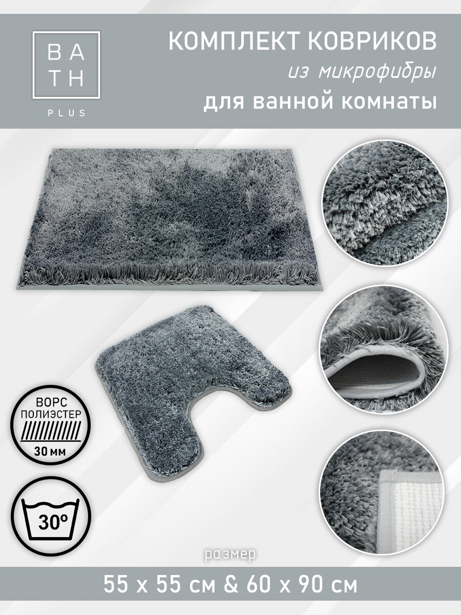 Купить Коврики в ванну не скользящий длинный ворс комплект ковриков Bath Plus Тиволи серый с доставкой по всей России.