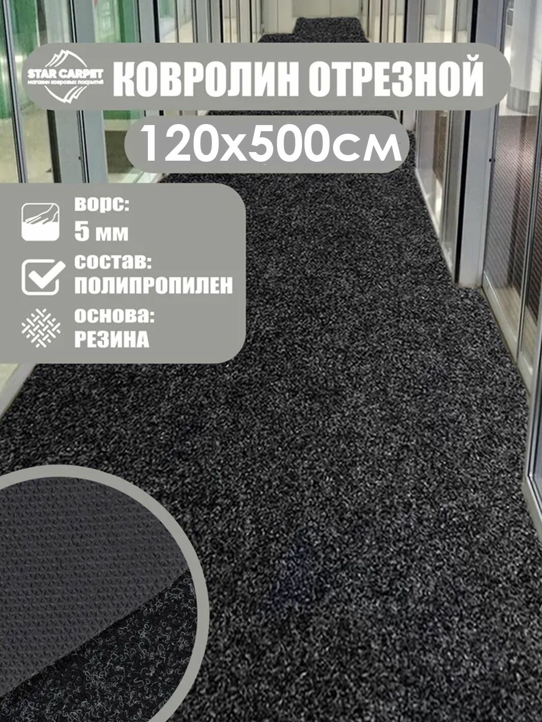 Ковролин на пол метражом 1,2х5 м. для офиса и дома, черный: сравнение цен, характеристики, фото, актуальное наличие и цены.