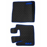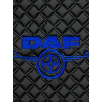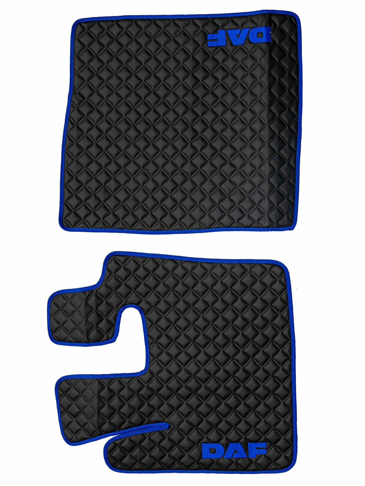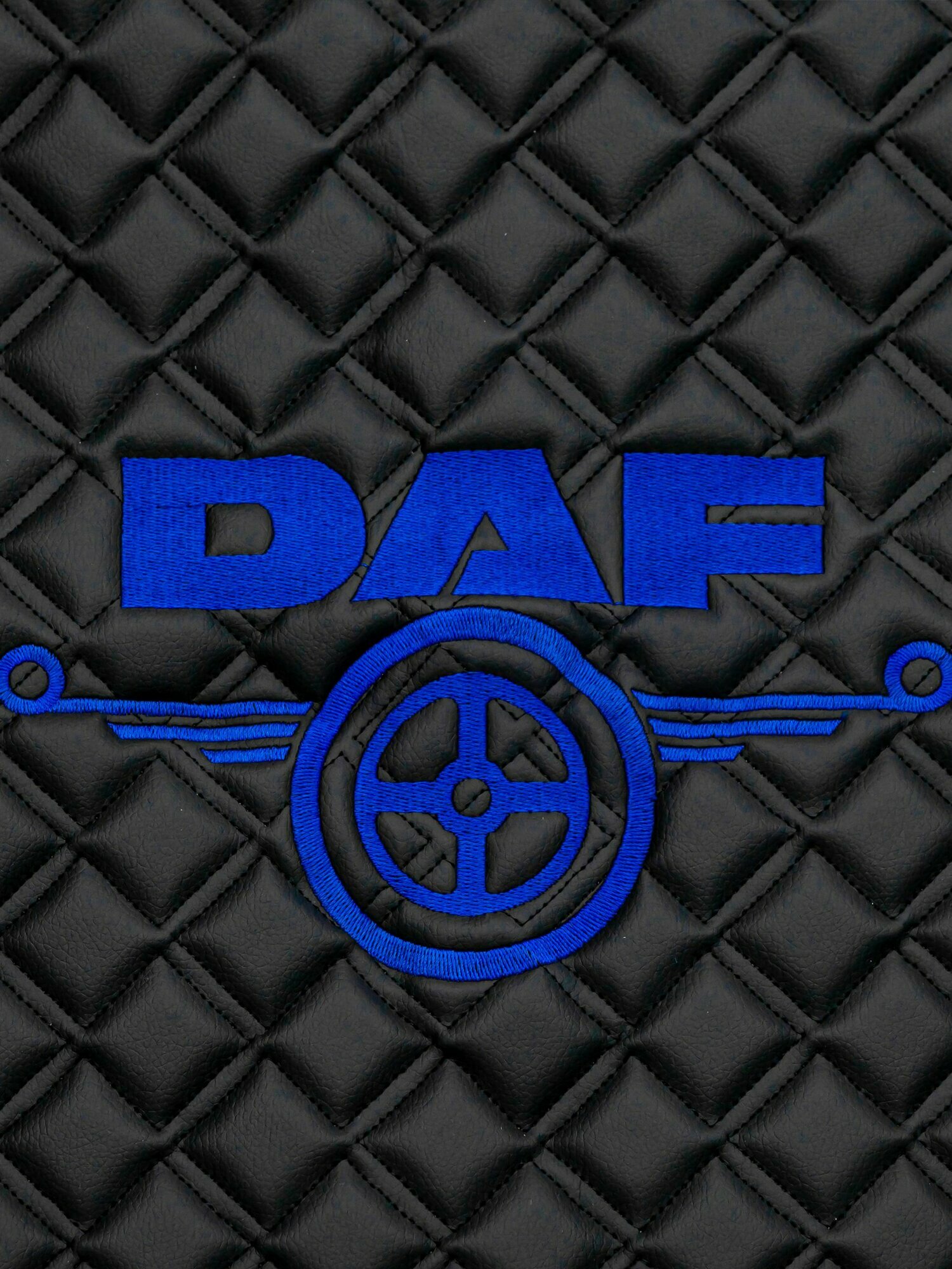 Купить Ковры стеганые для грузовых автомобилей Daf XF-105 с 2006г (механика), черный цвет с синей вышивкой и синим кантом. Экокожа — 3шт в комплекте (пассажир+водитель+шахта). Даф с доставкой по всей России.